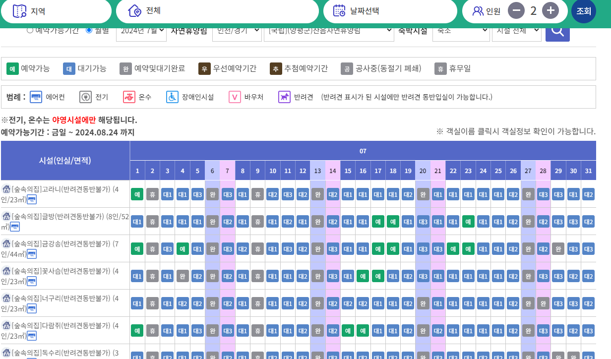 국립자연휴양림 선착순 예약 및 주말 추첨제 예약가능기간(2024년)
