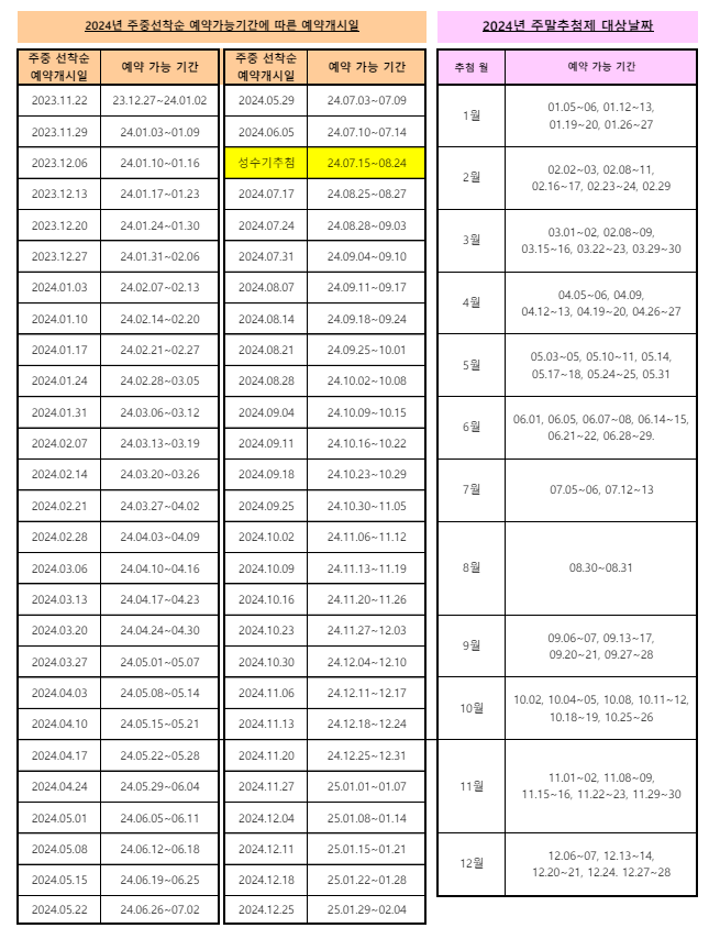 별첨 꿀팁. 우선예약이 가능한 대상자라면 우선예약 방법 이용하기 (단, 추첨제로 예약가능성)