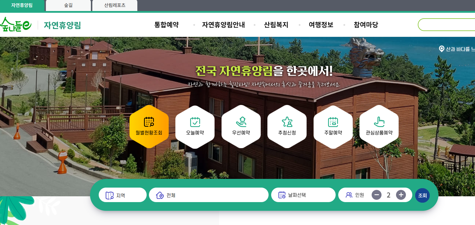 국립자연휴양림 예약 방법